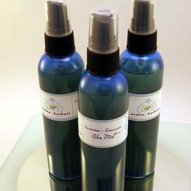 In a double boiler mix the wax and the oil. Turn off the heat and add the aloe and the green tea stirring well. Add the essential oil. Store in the refrigerator.